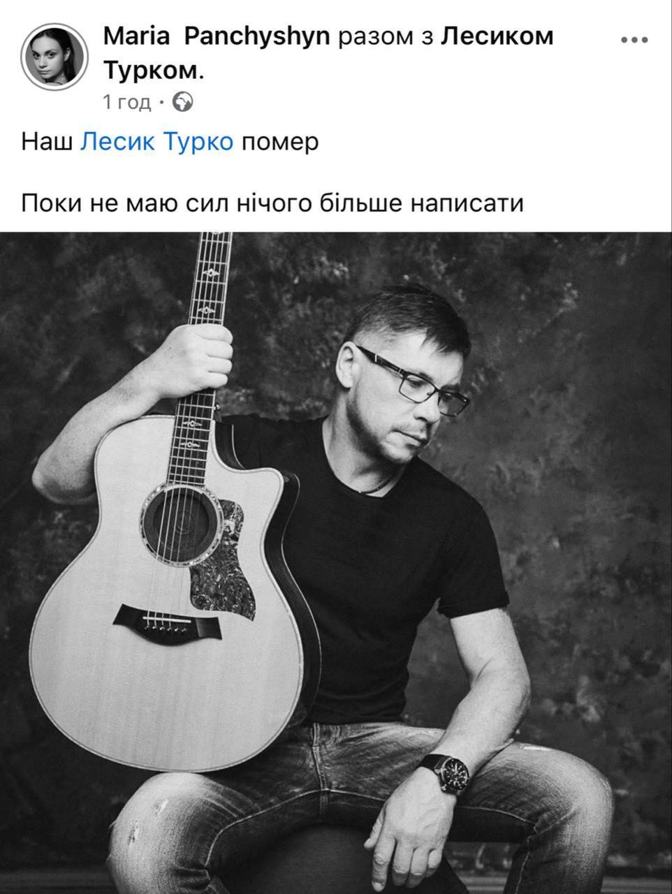 "Наш Лесик Турко умер Пока нет сил больше ничего написать", – говорится в сообщении.