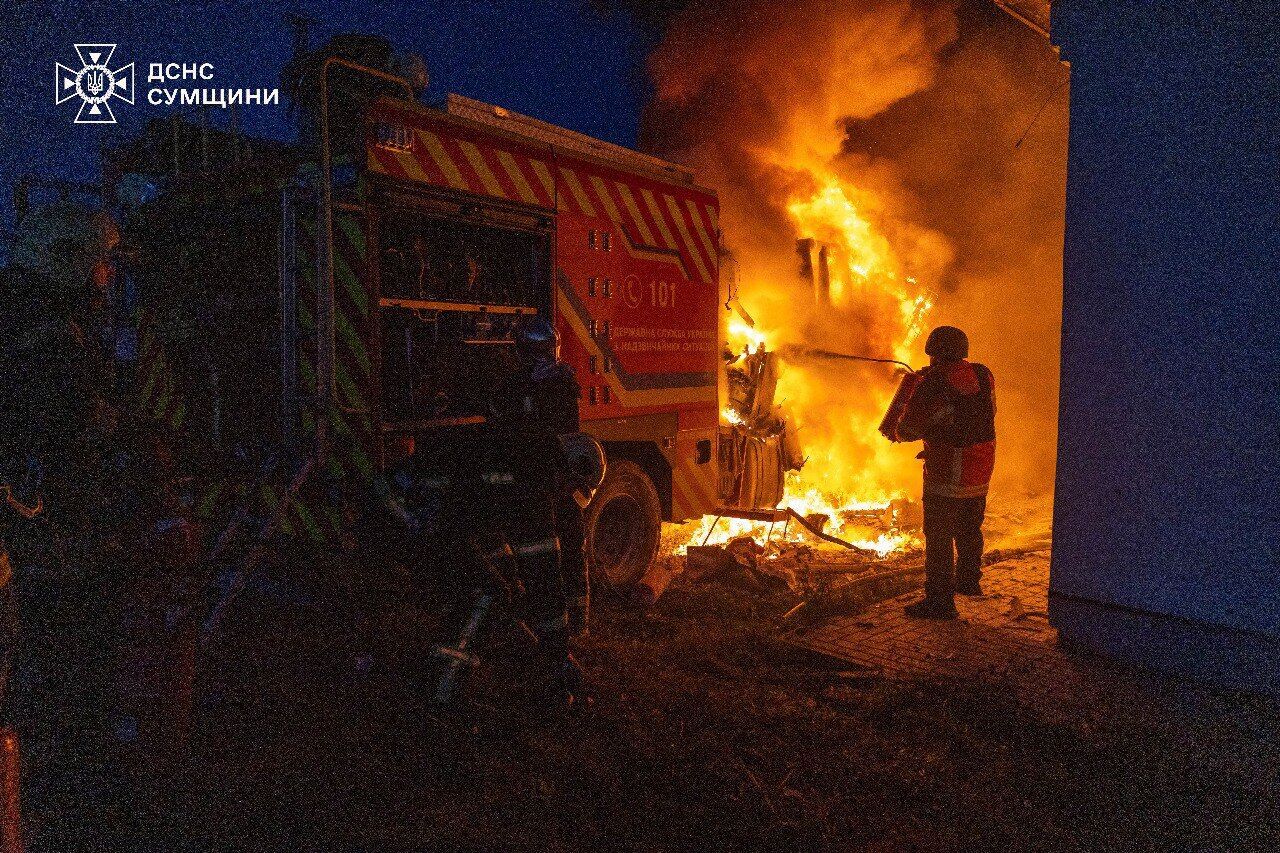 В Сумах враг сознательно атаковал спасателей: уничтожен пожарный автомобиль. Фото