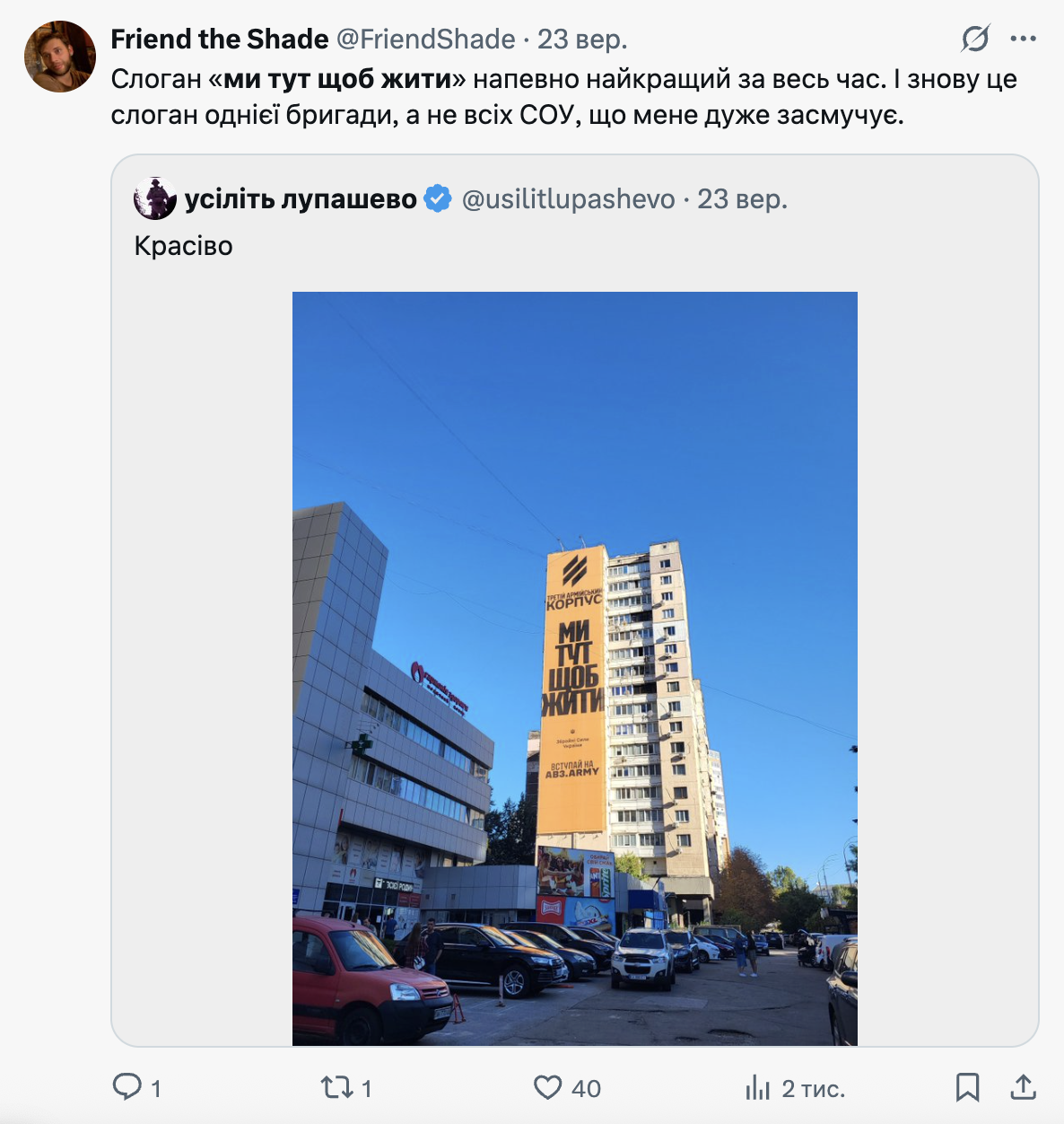 Война неотделима от жизни, но не отменяет ее: что украинцы пишут о кампании Третьего корпуса "Мы здесь, чтобы жить"