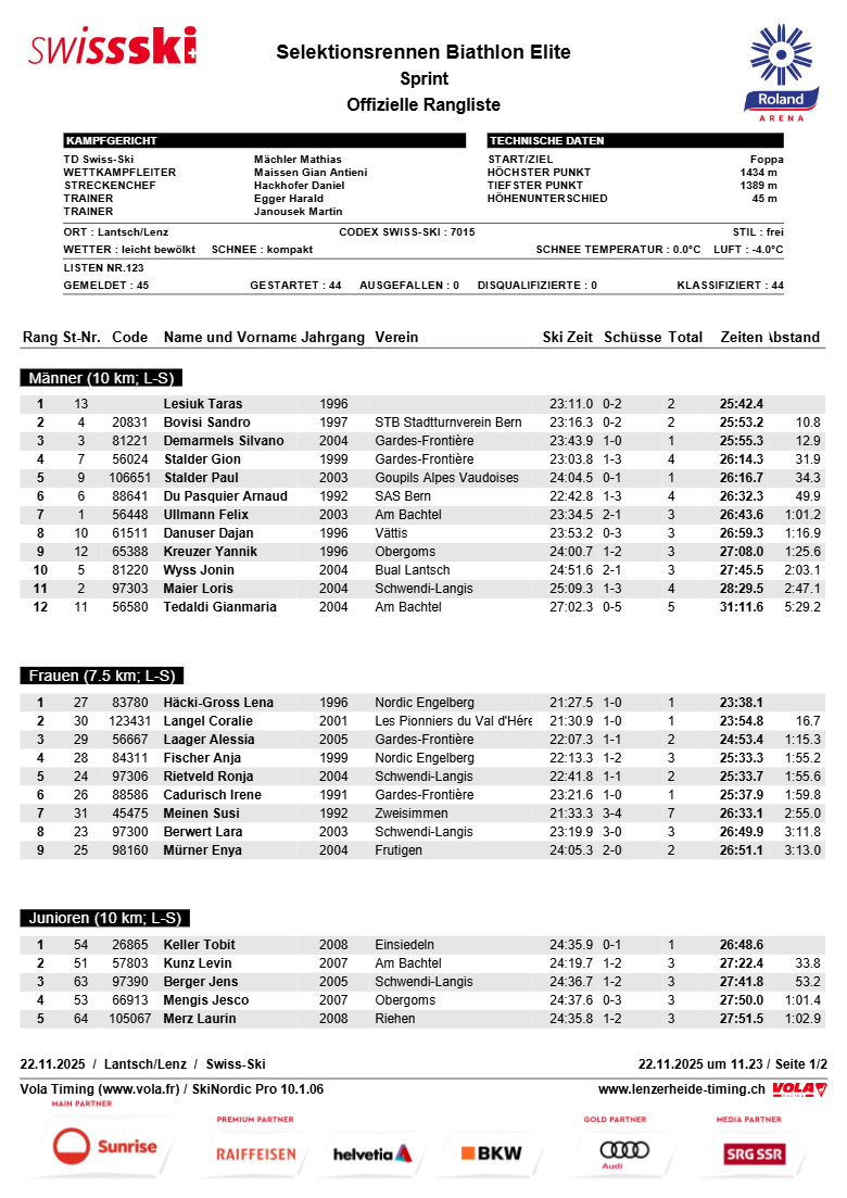 У першому спринті Лесюк показав лише 16-й результат, а Підручний став четвертим, однак у другій гонці українець видав ідеальний темп і впевнено забрав перемогу. Він фінішував із часом 25:42.4, припустившись двох помилок на другому вогневому рубежі. Цього вистачило, щоб випередити найближчого переслідувача Сандро Бовізі на 10.8 секунди, а Сільвано Демармельса — на 12.9 секунди.