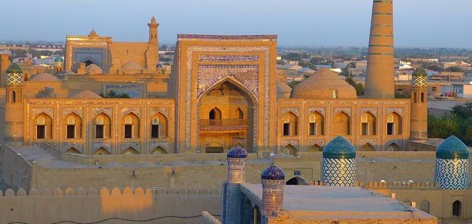 Місто Шовкового шляху Хіва в Узбекистані часто описують як живий музей. Добре збережені вулиці, мечеті з випаленої глиняної цегли та величні фортечні стіни нагадують дух Шовкового шляху та його караванів, які колись проходили тут у великій кількості.
